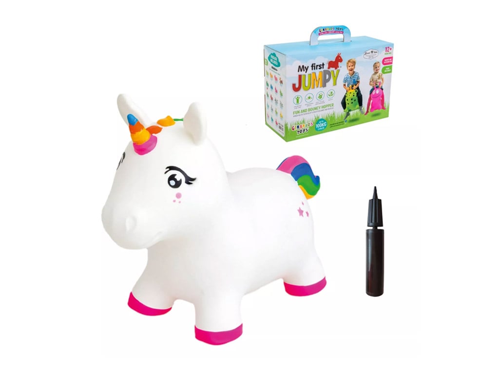 Μονόκερος Hop Hop ιδανικό για ατελείωτο πήδημα και παιχνίδι, βοηθά τα παιδιά να αναπτύξουν την ισορροπία, τη δύναμη και τον συντονισμό τους. Κατάλληλο για παιδιά άνω των 1 ετών. Είναι κατασκευασμένο από ανθεκτικό υλικό PVC, ενώ μπορεί να χρησιμοποιηθεί τόσο σε εσωτερικούς όσο και σε εξωτερικούς χώρους.
