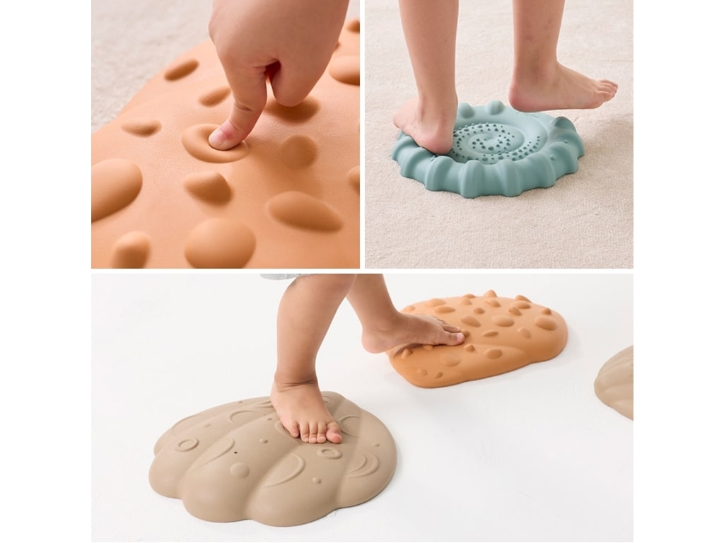 Το υλικό τους είναι μαλακό, εύκαμπτο και αντιολισθητικό, προσφέροντας ασφάλεια ακόμη και σε μικρά παιδιά. Το χαμηλό ύψος και ο παιχνιδιάρικος σχεδιασμός τα καθιστούν ιδανικά ως τα πρώτα “βήματα” για νήπια, ενώ ταυτόχρονα αποτελούν χρήσιμο εργαλείο αποσυμπίεσης και ανακούφισης από την ένταση στα πόδια για ενήλικες και ηλικιωμένους.