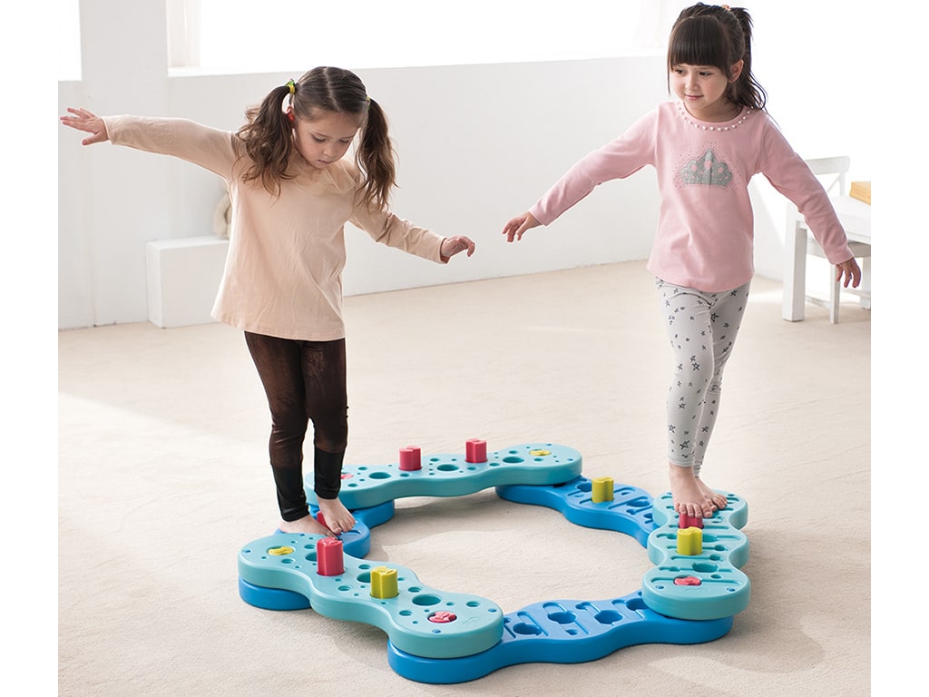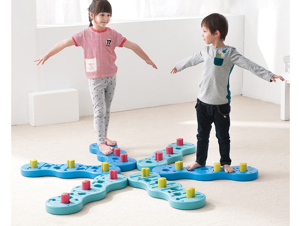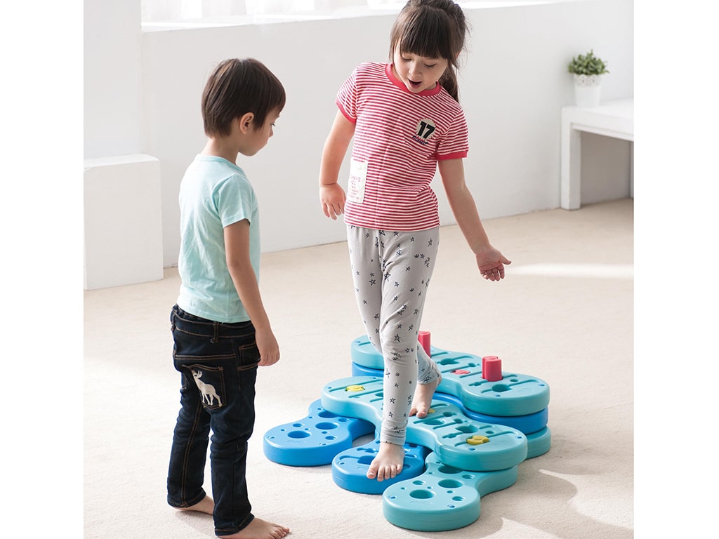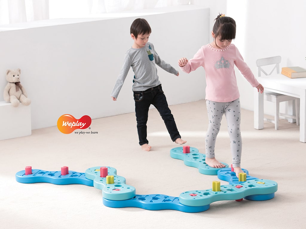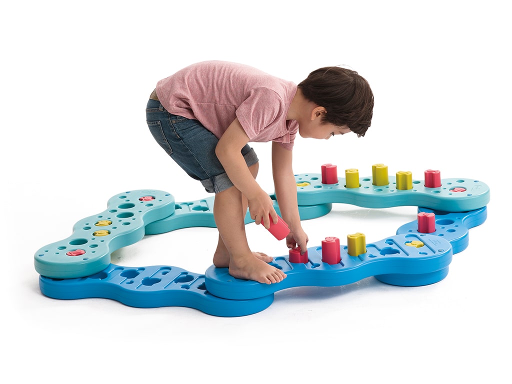 Μοναπάτια Coral adventure από την WEPLAY. Αποτελείται από 6 κομμάτια 75 x 23 x 5,5 εκατοστά (μπλε και γαλάζια) με ανάγλυφες επιφάνειες για ασφαλές περπάτημα και 18 συνδετικά στοιχεία 10,3 x 5,5 x 4,5 εκατοστά