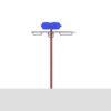 Ο κεντρικός άξονας περιστροφής κατασκευάζεται από μασίφ χαλύβδινο σωλήνα Φ45 χιλ. καλυμμένο με σιδηροσωλήνα Φ114 χιλ. Ο άξονας μέσω κατάλληλης διάταξης ρουλεμάν, μεταδίδει κίνηση στον μύλο. Σε ύψος 205 εκ. τοποθετούνται τρεις κάθετες στον άξονα, καμπύλες σιδηροσωλήνες Φ48 χιλ. που φέρουν στο κάτω μέρος χειρολαβές από σιδηροσωλήνα Φ26 χιλ. για τη στήριξη των χρηστών. Στο πάνω μέρος του άξονα τοποθετείται διακοσμητική σκεπή με τη μορφή σύννεφου από κόντρα πλακέ θαλάσσης.