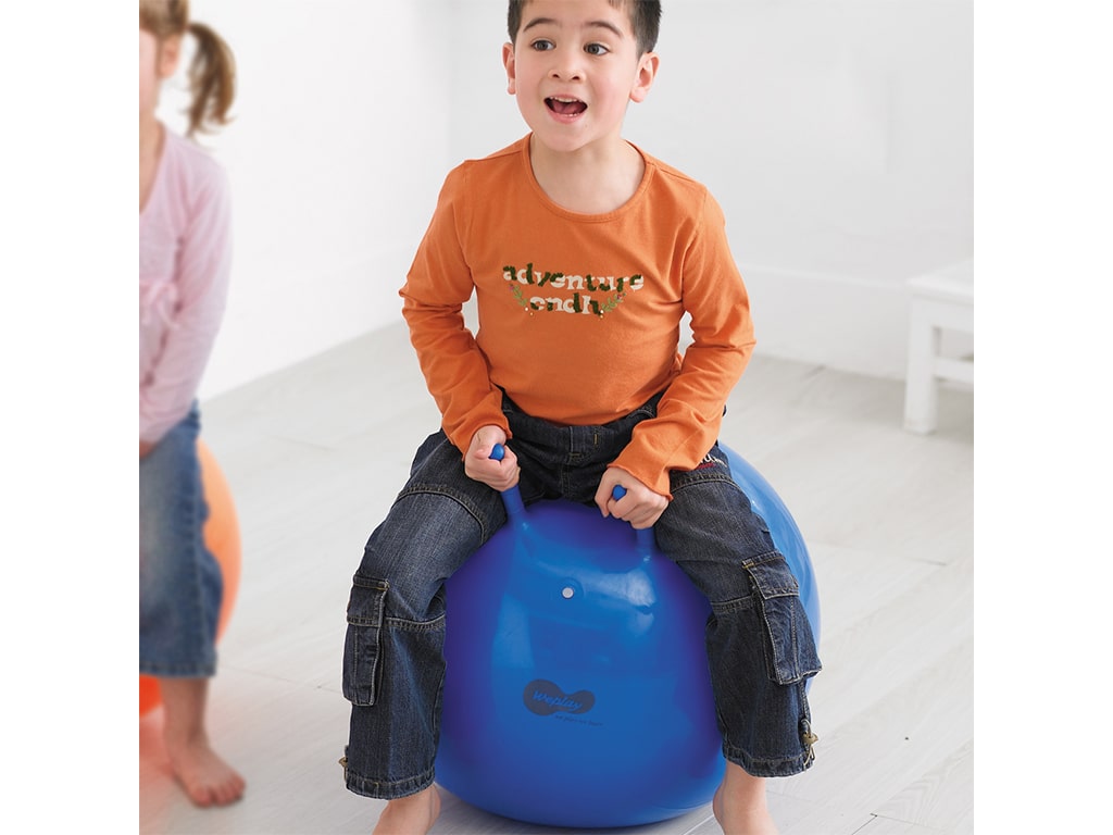 Η Μπάλα καγκουρό προσφέρει ατελείωτη διασκέδαση και ταυτόχρονα συμβάλλει στην ανάπτυξη σημαντικών κινητικών δεξιοτήτων. Τα παιδιά κάθονται επάνω της, κρατούν σφιχτά τη λαβή και πηδούν πάνω-κάτω, ενισχύοντας τη μυϊκή δύναμη των ποδιών και τον έλεγχο των κινήσεών τους.