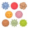 Σετ από 8 αισθητηριακά μπαλάκια σε παστέλ χρώματα, κατάλληλα για βρέφη και μικρά παιδιά. Κάθε μπαλάκι έχει διαφορετική υφή και σχήμα, προσφέροντας πολύτιμα αισθητηριακά ερεθίσματα και ενισχύοντας τη λεπτή κινητικότητα, την παρατηρητικότητα και την αίσθηση της αφής. Κατασκευασμένα από μαλακό, ασφαλές υλικό, χωρίς BPA, είναι ιδανικά για παιχνίδι, μασάζ ή χρήση στο μπάνιο. Διαθέτουν σήμανση CE και συμμορφώνονται με τα ευρωπαϊκά πρότυπα EN 71-1,2,3, που εγγυώνται την ασφάλεια των παιχνιδιών.