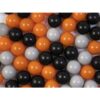 Κάθε μπαλάκι έχει διάμετρο 7,5 εκ., ιδανικό μέγεθος για παιχνίδι μικρών παιδιών και ασκήσεις κινητικότητας. Το σετ περιλαμβάνει μπαλάκια σε αποχρώσεις του Halloween (πορτοκαλί, μαύρο και γκρι) δημιουργώντας έναν χαρούμενο και διασκεδαστικό χώρο παιχνιδιού.