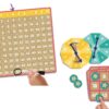 Το παιχνίδι περιλαμβάνει έναν επανεγγράψιμο πίνακα του Πυθαγόρα, όπου τα παιδιά μπορούν να γράφουν τα αποτελέσματα με τον ειδικό μαρκαδόρο. Με τους τροχούς τυχαίας επιλογής, οι παίκτες υπολογίζουν το σωστό γινόμενο και συμπληρώνουν τον πίνακά τους, προωθώντας τη λογική σκέψη και την ταχύτητα αντίδρασης.