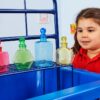 Μπουκάλια μέτρησης ημιδιάφανα, με έντονα χρώματα, πλαστικά με όψη γυαλιού. Τα σημάδια 1/4, 1/2 και 3/4 βοηθούν τα παιδιά να μάθουν για την χωρητικότητα και τον όγκο μέσα από το παιχνίδι. Επίσης μπορούν να χρησιμοποιηθούν και σε παιχνίδια αισθητηριακής ολοκλήρωσης. Τεμάχια 4. Διαστάσεις: 15 x 5,4 x 5,4 εκ. Ηλικία: 10 μηνών και άνω.