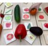 Το ντόμινο φρούτα & λαχανικά είναι ένα σετ από δεκατέσσερα ξύλινα ζεύγη από πλακάκια με καθαρή έγχρωμη εκτύπωση στη μία πλευρά πραγματικών φωτογραφικών εικόνων φρούτων και λαχανικών.