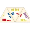 Με τα ντόμινο μαθηματικά, κάθε παιδί μαθαίνει αριθμητική παίζοντας. Πρέπει πάντα να προσέχετε και τις τρεις πλευρές ντόμινο. Τα τρίγωνα από στιβαρό χαρτόνι ενώνονται με τέτοιο τρόπο ώστε ο υπολογισμός και το αποτέλεσμα να ταιριάζουν. 2 παιχνίδια με διαφορετικά επίπεδα δυσκολίας, το καθένα με 18 τρίγωνα. Παιχνίδι 1: Ανάθεση συνόλων των ίδιων μοτίβων σε διαφορετικές διατάξεις. Παιχνίδι 2: Ανάθεση συνόλων των ίδιων γεωμετρικών σχημάτων σε διαφορετικές διατάξεις. Ηλικία: 4+