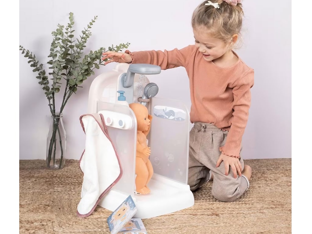 Η πλαστική ντουζιέρα για κούκλες είναι ένα εξαιρετικό σετ παιχνιδιού για φροντίδα των κούκλων. Περιλαμβάνει όλα τα απαραίτητα αξεσουάρ για να δημιουργήσετε την ιδανική εμπειρία μπάνιου για τις κούκλες σας.