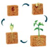 Οι φιγούρες απεικονίζουν με λεπτομέρεια τη διαδικασία: η κοκκινωπή ρίζα που αναπτύσσεται στο χώμα, το στέλεχος που αναζητά το φως του ήλιου και τα πράσινα φύλλα που ολοκληρώνουν τον κύκλο ζωής. Μέσα από το παιχνίδι, τα παιδιά μαθαίνουν για τη φύση, τη φωτοσύνθεση και την ανάπτυξη των φυτών με έναν διασκεδαστικό και πρακτικό τρόπο.
