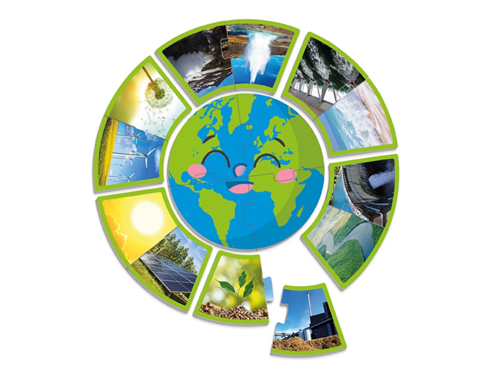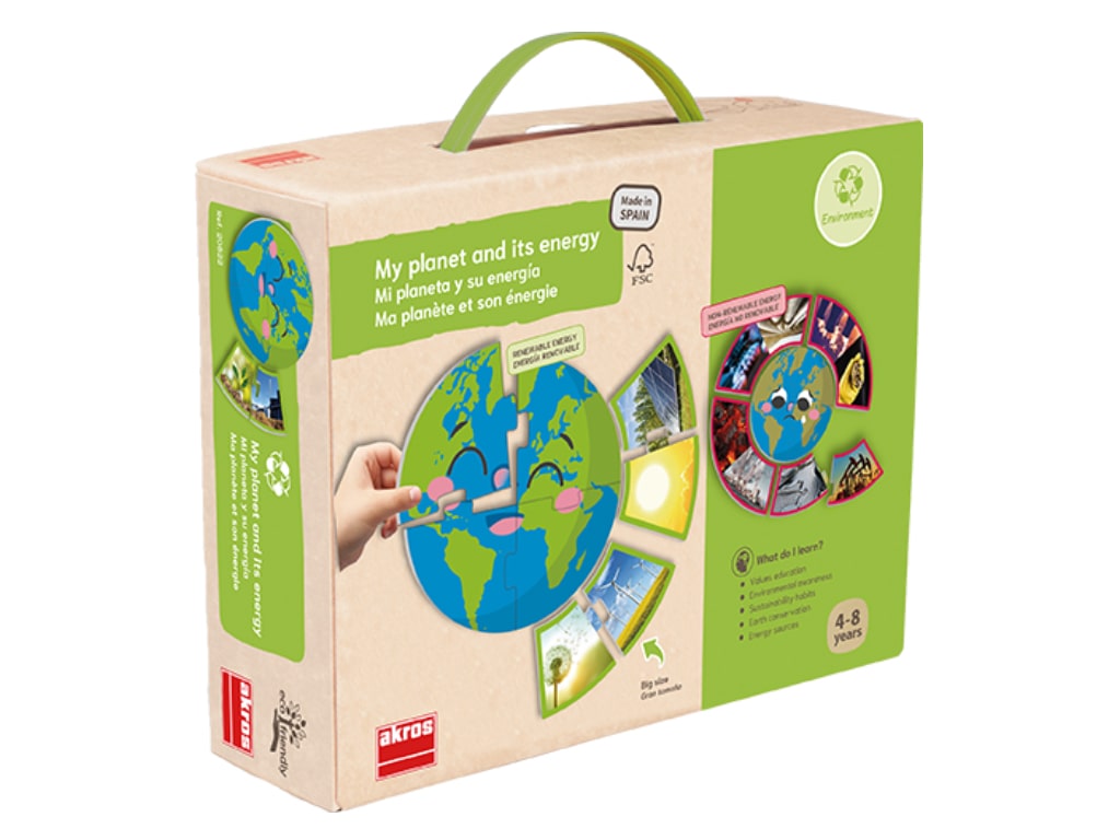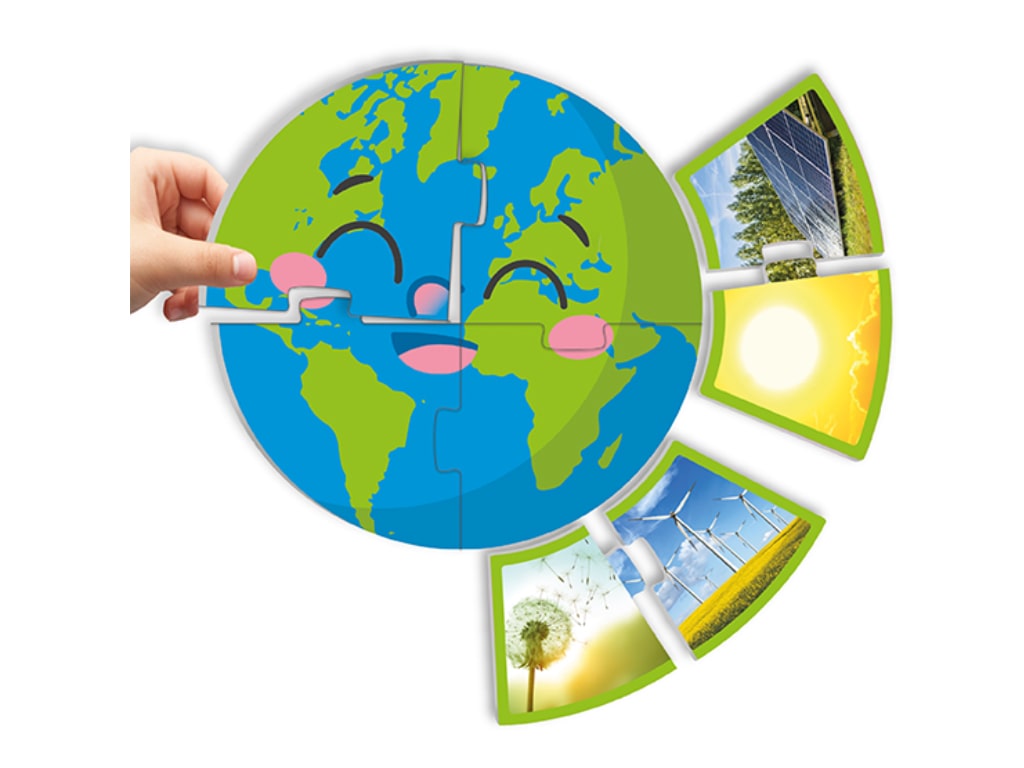 Τα παιδιά ανακαλύπτουν την προέλευση της ενέργειας και πώς μεταμορφώνεται για να φτάσει στα σπίτια και τις πόλεις μας. Μαθαίνουν για τις διάφορες πηγές ενέργειας, τόσο ανανεώσιμες όσο και μη ανανεώσιμες, στον πλανήτη μας. Περιλαμβάνονται 2 γιγάντια κυκλικά παζλ με συνολικά 28 κομμάτια χαρτονιού υψηλής ποιότητας. Διάμετρος: 35 εκ. Ηλικία: 4+