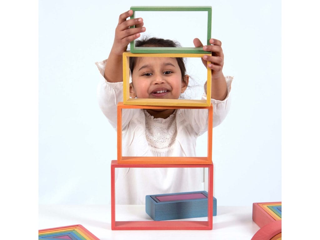 Φέρτε χρώμα και δημιουργικότητα στο παιχνίδι με το σετ Rainbow Blocks. Αποτελείται από 7 ξύλινα ορθογώνια σε λαμπερά χρώματα του ουράνιου τόξου. Το σετ είναι ιδανικό για την ανάπτυξη δεξιοτήτων λεπτής κινητικότητας, την αναγνώριση χρωμάτων και τη δημιουργική σκέψη. Ιδανικό για εκπαιδευτικό παιχνίδι στο σπίτι, στο σχολείο ή στον παιδότοπο.