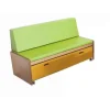 Είναι κατασκευασμένο από συνθετικό ξύλο M.D.F με επένδυση οξιάς, λουστραρισμένο στο φυσικό χρώμα του ξύλου με βερνίκι μη τοξικό και φιλικό προς το περιβάλλον.Στο κάτω μέρος τους φέρουν κυλιόμενο συρτάρι με μεγάλο αποθηκευτικό χώρο. Έχουν επίσης μαξιλάρι στο κάθισμα και την πλάτη επενδυμένα με ύφασμα υψηλής ποιότητας και αντοχής. Όλα τα άκρα είναι στρογγυλεμένα και ακίνδυνα για τα παιδιά. Διαστάσεις: παγκάκι: 120 x 50 x 67 εκατοστά