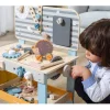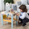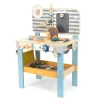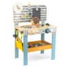 Πάγκος εργασίας ξυλουργού. Τα μικρά παιδιά θα νιώσουν πραγματικοί τεχνίτες με τον ξύλινο πάγκο εργασίας με εργαλεία. Το σετ είναι κατασκευασμένo εξ ολοκλήρου από μασίφ ξύλο με λείο φινίρισμα, γεγονός που τo κάνει δυνατό και ανθεκτικό. Το παιδί θα μπορεί να καρφώσει καρφιά με ένα σφυρί, να σφίξει τις βίδες με ένα κλειδί, να βιδώσει ξύλινες σανίδες και γρανάζια σε έναν πάγκο εργασίας. Το παιχνίδι έχει ένα ρολόι με δείκτες, επίπεδες λεπτομέρειες σε μορφή ζώων, κρεμαστές τσέπες, διάφορα εργαλεία και 1 ράφι κάτω από τον πάγκο. Βοηθάει τα παιδιά να αναπτύξουν λεπτές κινητικές δεξιότητες των χεριών, τη σκέψη, τον συντονισμό ματιού-χεριού. Συμμορφώνεται με τα πρότυπα ασφαλείας: Ευρωπαϊκό EN71, Αμερικανικό ASTM. Διαστάσεις: 47 x 27 x 67 εκ. Βάρος: 3,2 kg. Ηλικία: 3 ετών και άνω.