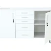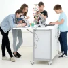 Από μοριοσανίδα επενδυμένη με μελαμίνη. Με 4 ρόδες με φρένο και χερούλια από αλουμίνιο, για εύκολη μετακίνηση. Με αναδιπλούμενη κορυφή που όταν ξεδιπλώνει διπλασιάζεται. Με 2 ντουλαπάκια που κλειδώνουν και 5 συρτάρια. Διαθέτει ηλεκτρικές πρίζες που βγαίνουν από την κορυφή και καλώδιο. Διαστάσεις: 168 X 56 εκ. (101,5 ύψος με ξεδιπλωμένη κορυφή) Μήκος καλωδίου: 150 εκ.