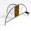Το παιχνίδι αναρρίχησης φεγγάρι, κατασκευάζεται από δύο καμπύλους σιδηροσωλήνες Φ76 χιλ., ο ένας με σχήμα ημικυκλίου και ο άλλος με σχήμα τεταρτοκυκλίου, που ενώνονται κάθετα μεταξύ τους. Στο τεταρτοκύκλιο είναι ενσωματωμένο ένα πλέγμα αναρρίχησης με συρματόσχοινα Φ16 χιλ. επενδεδυμένα με πολυπροπυλένιο. Στο κέντρο του ημικυκλίου υπάρχει ένας τοίχος αναρρίχησης από κόντρα πλακέ θαλάσσης με αντιολισθητική επιφάνεια στη μία πλευρά και ειδικά στηρίγματα αναρρίχησης. Εκατέρωθεν του τοίχου υπάρχουν δύο σχοινιά αναρρίχησης και στο ένα άκρο βρίσκεται μία εξέδρα δραστηριοτήτων από κόντρα πλακέ θαλάσσης με αντιολισθητική επιφάνεια στη μία πλευρά.