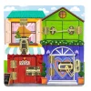 Παιχνίδι δεξιοτήτων με κλειδαριές. Ξύλινος πίνακας με 4 διαφορετικές κλειδαριές. Τα ζωηρά χρώματα και οι εικόνες που ανακαλύπτει το παιδί καθώς ανοιγεί τις πόρτες, κάνουν το παιχνίδι πιο διασκεδαστικό. Το παιδί κλειδώνοντας και ξεκλειδώνοντας τις κλειδαριές βελτιώνει τις λεπτές κινητικές του δεξιότητες και τον συντονισμό χεριού ματιού. Κατασκευασμένο από υψηλής ποιότητας μη τοξικά υλικά. Διαστάσεις: 30 x 30 x 2,2 εκ. Ηλικία: 18 μ.