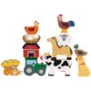 Τα πολύχρωμα κομμάτια με χαρούμενες φιγούρες ζώων της φάρμας ενθαρρύνουν τα παιδιά να τα στοιβάζουν, να τα συνδυάζουν και να δημιουργούν τις δικές τους κατασκευές. Με αυτόν τον τρόπο ενισχύεται η λεπτή κινητικότητα, η λογική σκέψη και ο συντονισμός χεριού-ματιού, ενώ παράλληλα καλλιεργείται η φαντασία και η δημιουργικότητα.