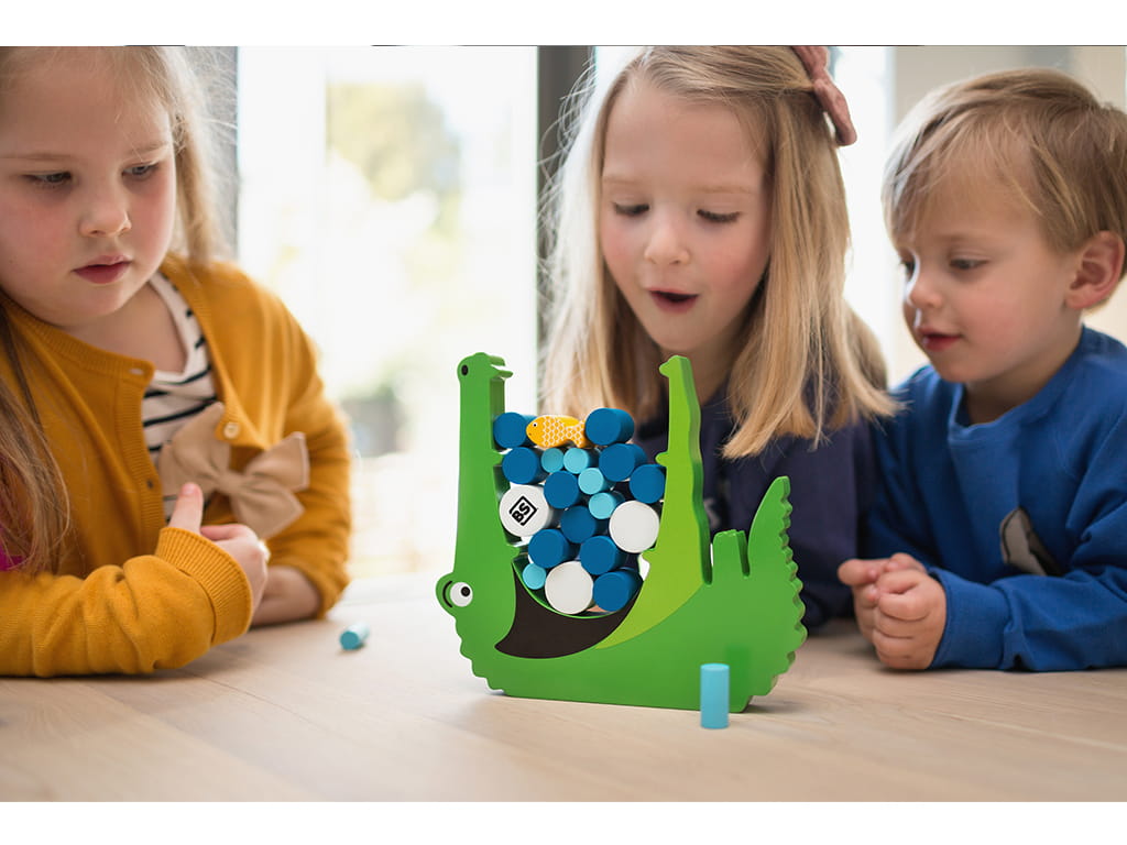 Το παιχνίδι απαιτεί προσοχή και σταθερές κινήσεις, καθώς κάθε παίκτης πρέπει να σπρώξει τα κομμάτια με το ειδικό ξυλάκι χωρίς να διαταράξει την ισορροπία. Αν τα ψάρια πέσουν από το στόμα του κροκόδειλου, τότε το παιχνίδι γίνεται ακόμη πιο δύσκολο. Έτσι, τα παιδιά μαθαίνουν να ελέγχουν τις κινήσεις τους, να σκέφτονται στρατηγικά και να αναπτύσσουν την επιδεξιότητά τους.