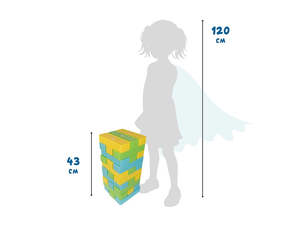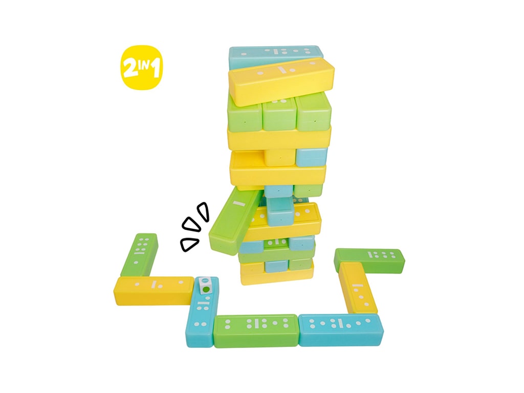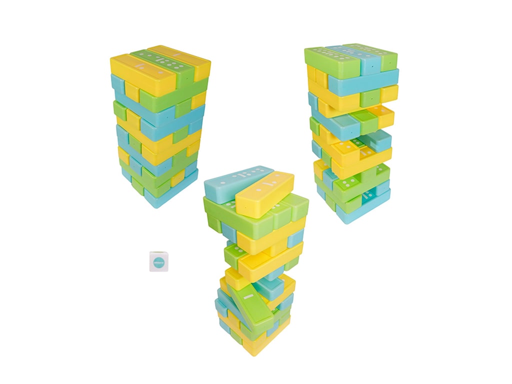 Διασκεδαστικό παιχνίδι ισορροπίας που συνδυάζει πύργο και ντόμινο, σε έντονα χρώματα γαλάζιο και λαχανί. Κατασκευασμένο από ανθεκτικό πλαστικό, περιλαμβάνει τουβλάκια, 1 ζάρι και έχει συνολικό ύψος 20 εκ. Κατάλληλο για μικρούς και μεγάλους, προσφέρει ατελείωτο παιχνίδι και βοηθά στην ανάπτυξη της συγκέντρωσης, της υπομονής και του συντονισμού.