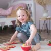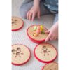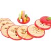 Κατασκευασμένο από στιβαρό ξύλο και με έντονα, ζωντανά χρώματα, αυτό το μοναδικό παιχνίδι αποτελεί επίσης ένα εντυπωσιακό διακοσμητικό αντικείμενο. Οι κάμπιες έχουν διαφορετικά μήκη, και κάθε φέτα του μήλου διαθέτει λιγότερες οπές από την προηγούμενη, δημιουργώντας μια πρόκληση που ενθαρρύνει τη λογική επίλυση προβλημάτων. Για διευκόλυνση, το πιο σκούρο κουκούτσι του μήλου λειτουργεί ως οδηγός για την εύρεση της σωστής διαδρομής.