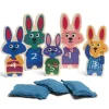 Παιχνίδι στόχου με ξύλινα κουνελάκια με αριθμούς. Η οικογένεια κουνελιών θέλει να κοιμηθεί, βοηθήστε τους ρίχνοντάς τους τα μαξιλάρια για να μπορέσουν επιτέλους να κοιμηθούν καλά. Περιλαμβάνει: 5 ξύλινα κουνελάκια με αριθμούς σε 3 διαφορετικά μεγέθη και 3 σακουλάκια με βάρος. Ηλικία: 3+