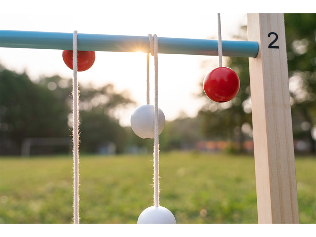 - Ξύλινο παιχνίδι στόχου με κρίκους και μπάλες 2 σε 1