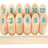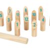 Οι ξύλινοι στύλοι είναι αριθμημένοι από το 1 έως το 12 για να βοηθήσουν τα παιδιά να αθροίσουν τους πόντους τους. Είναι καλύτερο να παίξετε αυτό το παιχνίδι σε μια μεγάλη, επίπεδη επιφάνεια και να το διαμορφώσετε ανάλογα με το επίπεδο δυσκολίας που επιθυμείται.