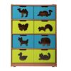 - Περιλαμβάνει 8 μεγάλα παιχνιδόκουτα Κάθε συρτάρι στο μπροστινό του μέρος έχει σε σχήμα ζωάκι διάφανο plexi glass σε διάφορα χρώματα, το οποίο επιτρέπει το περιεχόμενό του.