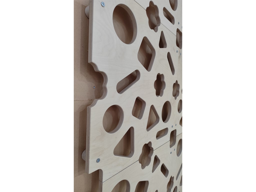 Δημιουργήστε έναν μοναδικό χώρο άσκησης και παιχνιδιού με το πάνελ αναρρίχησης πολλαπλών συνδυασμών. Είναι κατασκευασμένο από ανθεκτικό πλακάζ πάχους 2 εκ. σε φυσικό χρώμα και διαθέτει διάτρητα σχήματα. Χάρη στον έξυπνο σχεδιασμό του, τα κομμάτια ταιριάζουν τέλεια μεταξύ τους από οποιαδήποτε πλευρά, επιτρέποντας τη δημιουργία μεγαλύτερων ή μικρότερων επιφανειών αναρρίχησης ανάλογα με τον διαθέσιμο χώρο.