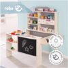 Παντοπωλείο ξύλινο ρολόι και ένας πρακτικός πίνακας κιμωλίας για την ανακοίνωση ειδικών προσφορών αποτελούν επίσης μέρος του εξοπλισμού αυτού του ξύλινου καταστήματος. Περιλαμβάνει 1 ταμειακή μηχανή.