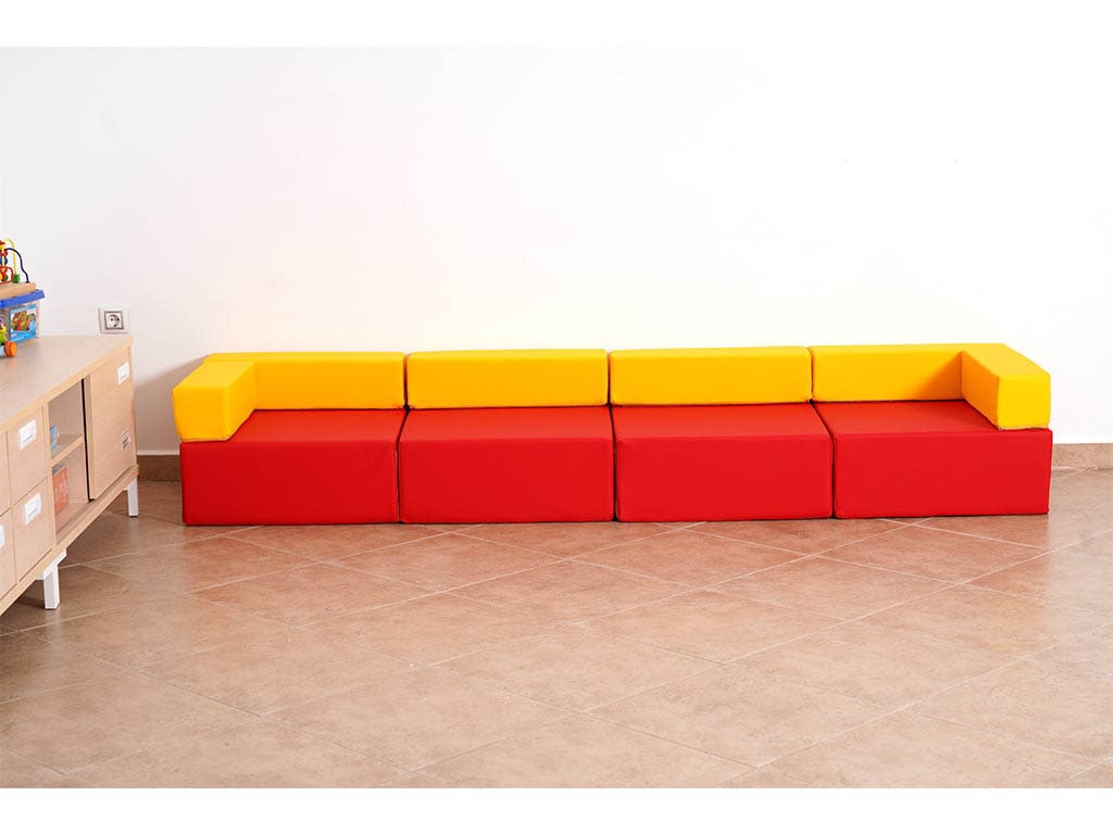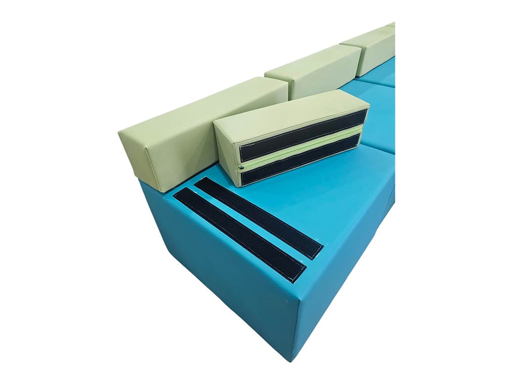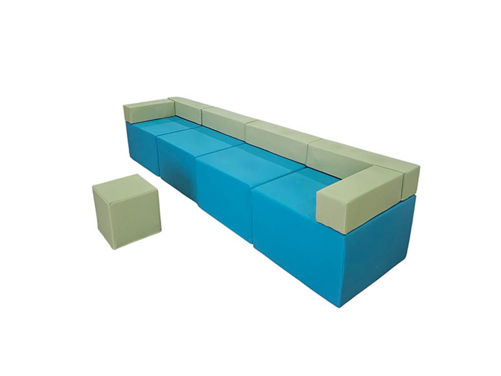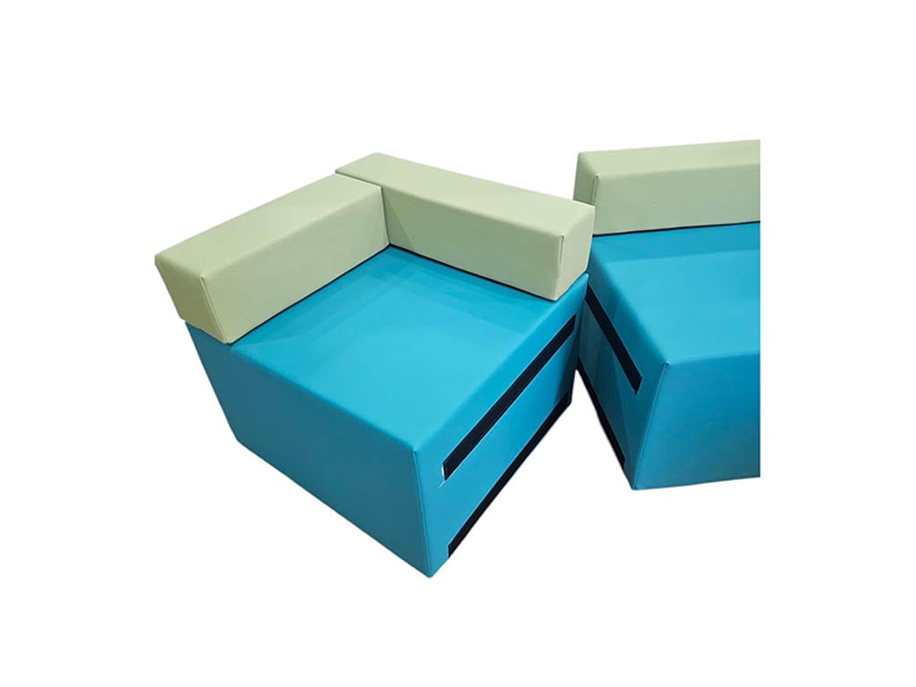 Kατασκευασμένo από αφρώδες υλικό υψηλής πυκνότητας για να μην χάνει τη φόρμα του, επενδυμένο με ύφασμα, δερματίνη ή ναϊόλόπανο. Είναι διαθέσιμο σε πολλά χρώματα. Τοποθετείται σε ευθεία ή γωνία διάταξη. Τα κομμάτια ενώνονται μεταξύ τους με velcro για να μένουν σταθερά. Κομμάτι γωνιακό: 60 x 60 x 40 εκ. Ύψος καθίσματος: 25 εκ.