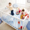 Κατασκευασμένο από λακαρισμένο πεύκο και κάλυμμα βινυλίου στο στρώμα. Κατάλληλο για 3 παιδιά. Μέγιστο βάρος 100 κιλά. Χρώματα: λευκό και γκρι. Διαστάσεις: 125 Χ 125 Χ 90 εκ. Ύψος απο το έδαφος: 25 εκ.