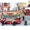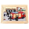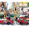 Ξύλινο πάζλ επιπέδων η πυρκαγιά. Απεικονίζει την προετοιμασία και την αποτελεσματικότητα των πυροσβεστών απέναντι σε συμβαν πυρκαγιάς διαμερισμάτων με ενοίκους σε πολυκατοικία. Διαστάσεις: 29,5 x 20,5 εκ. 58 τεμαχίων.