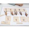Το σετ περιλαμβάνει μια σταθερή ξύλινη θήκη αποθήκευσης, 5 φιγούρες, 2 παζλ, 5 κάρτες κειμένου για τις φιγούρες, και 1 κάρτα τίτλο, καθιστώντας το ένα ολοκληρωμένο και πρακτικό εργαλείο μάθησης.