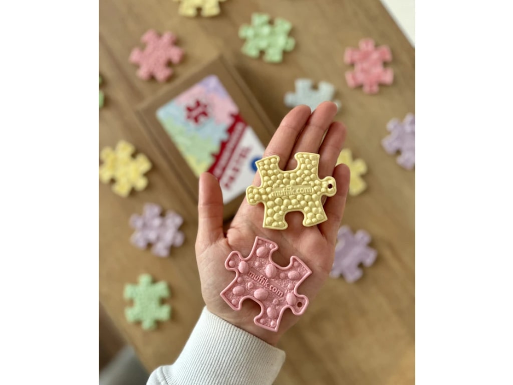 Το Πάζλ Sensory είναι ένα πρωτότυπο αισθητηριακό παιχνίδι που βοηθά στην αγωγή των αισθήσεων και την ανάπτυξη της λεπτής κινητικότητας. Τα απαλά, παστέλ χρώματα και η υφή του προσφέρουν μια ευχάριστη εμπειρία αφής, ενισχύοντας τη χαλάρωση και τη συγκέντρωση. Κάθε κομμάτι μπορεί να χρησιμοποιηθεί και ως μπρελόκ, ώστε να το έχουν μαζί τους παιδιά και ενήλικες για στιγμές ηρεμίας ή ως βοήθημα κατά του στρες.