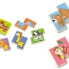 Το σετ ξύλινων παζλ με ζώα περιλαμβάνει 36 κομμάτια, αντιπροσωπεύοντας 9 διαφορετικά ζωάκια, καθένα από τα οποία χωρίζεται σε δύο μέρη (κάθετα ή οριζόντια). Το παιχνίδι αυτό είναι ιδανικό για παιδιά από 3 ετών και άνω, καθώς ενισχύει τη λογική σκέψη, τη μνήμη, τη συγκέντρωση και τις λεπτές κινητικές δεξιότητες.