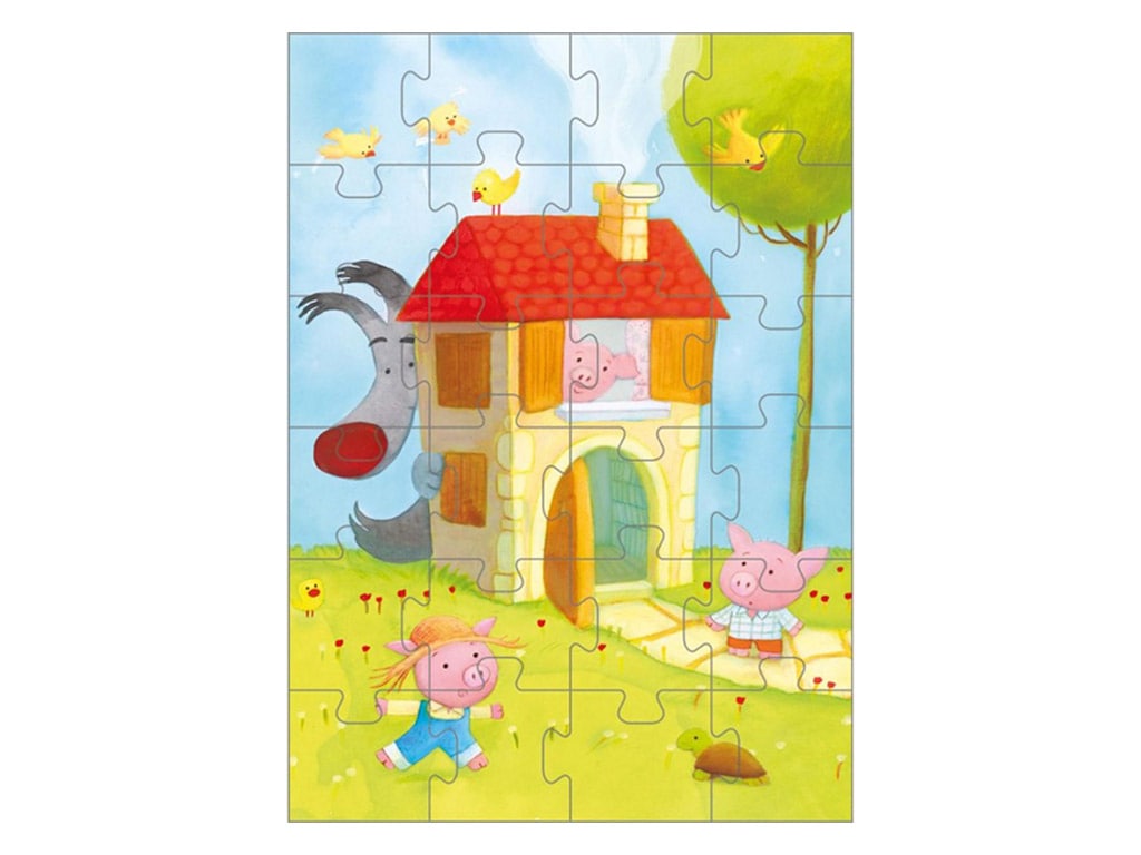 Η χαρούμενη και πολύχρωμη εικονογράφηση τα τρία γουρουνάκια τραβά την προσοχή προσφέροντας παράλληλα ευχάριστη και δημιουργική απασχόληση. Τα μεγάλα κομμάτια είναι φτιαγμένα από ανθεκτικό χαρτόνι και είναι εύκολα στη συναρμολόγηση, ενισχύοντας τη συγκέντρωση, τον συντονισμό και τη λογική σκέψη των παιδιών.
