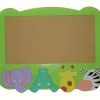 Το πλαίσιο είναι κατασκευασμένο από συνθετικό ξύλο MDF με επένδυση οξιάς και είναι κομμένο και μορφοποιημένο έτσι ώστε στο κάτω μέρος να έχει χαραμένα ζωάκια σε όλο το μήκος του πίνακα. Το πλαίσιο είναι όλο βαμμένο με ζωηρά χρώματα της επιλογής σας. Ο πίνακας όπου κρεμιούνται οι εργασίες είναι από ινσουλάιτ. Τα χρώματα και τα βερνίκια που χρησιμοποιούνται είναι νερού, μη τοξικά και φιλικά προς το περιβάλλον. Διαστάσεις: 150 x 120 εκατοστά