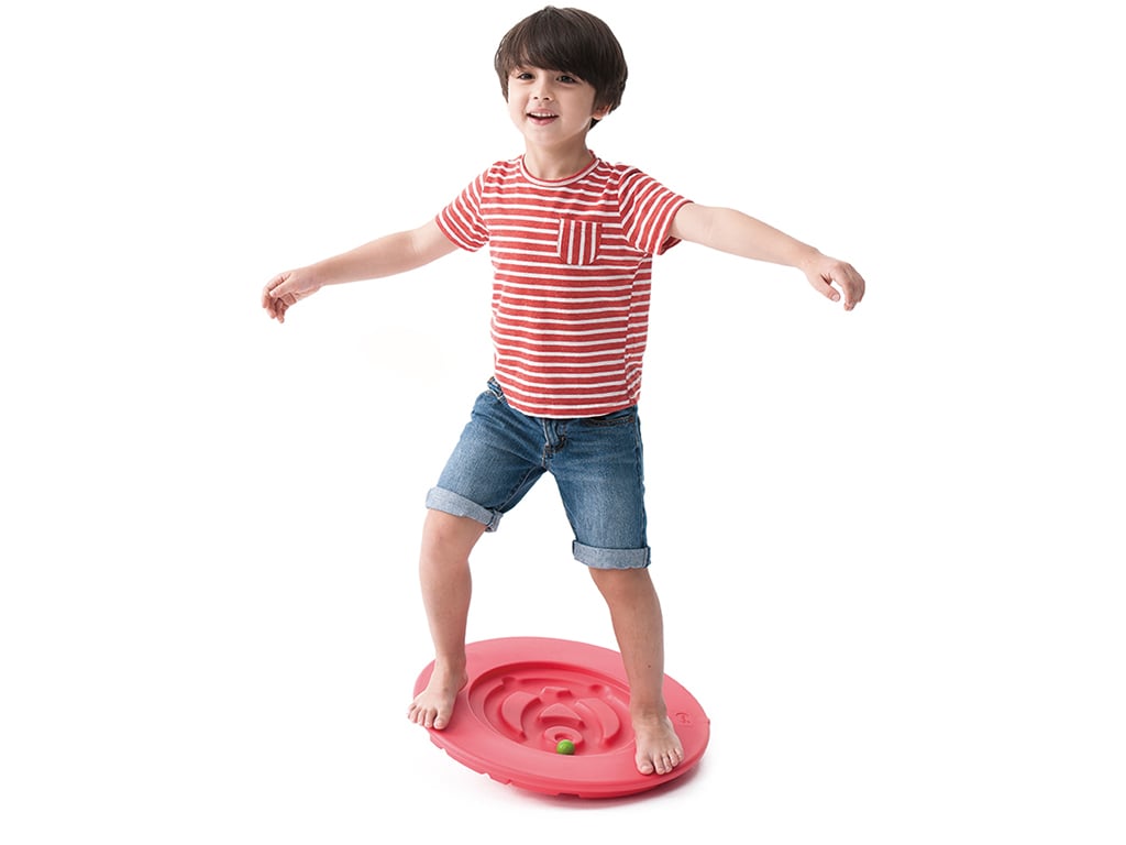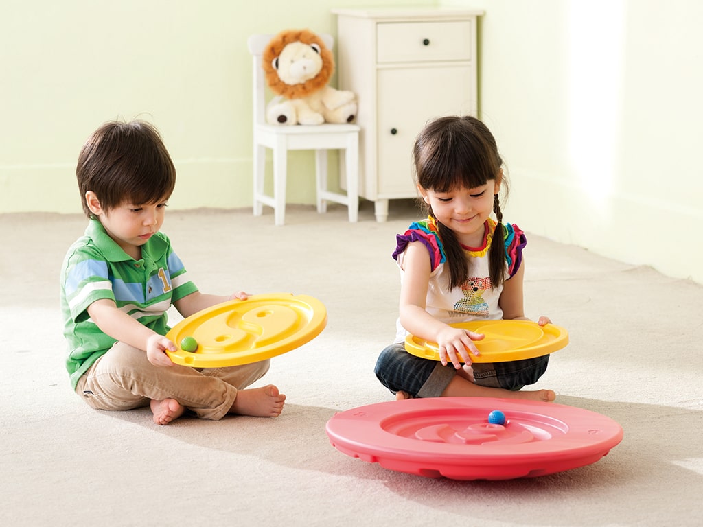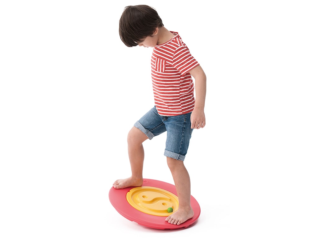 Χάρη στους εναλλάξιμους δίσκους (2D και 3D σχέδιο), τα παιδιά έχουν τη δυνατότητα να βιώσουν διαφορετικές προκλήσεις σε ένα μόνο σετ. Ο δίσκος μπορεί να χρησιμοποιηθεί και χωρίς τη βάση, ενώ η βάση λειτουργεί και ως πίνακας ισορροπίας: το παιδί στέκεται πάνω της καθώς μετακινεί την μπάλα, βελτιώνοντας την ισορροπία και τη συνεργασία ματιού – χεριού.