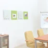 Αποτελείται από γυαλί ασφαλείας σκληρυμένο ESG, το οποίο χαρακτηρίζεται από μεγαλύτερη ελαστικότητα και μηχανική και θερμική αντοχή από το συνηθισμένο γυαλί είναι ασφαλέστερο γιατί διασπάται σε μικρά, μη κοπτικά κομμάτια και είναι κολλημένο σε όλη την επιφάνεια (με χρήση κόλλας πολυχλωροπρενίου) γαλβανισμένο φύλλο, το οποίο έχει εξοπλιστεί με οπές στερέωσης με προφίλ σε ομοιογενές υλικό. Χάρη στις στρογγυλεμένες γωνίες, είναι ασφαλείς στη χρήση. Μόνο μαγνήτες νεοδυμίου μπορούν να χρησιμοποιηθούν. Χρώμα: Πράσινο. Περιλαμβάνει 1 μαρκαδόρο και 6 μαγνήτες 1 x 1 εκ. Διαστάσεις πίνακα: 45 x 45 εκ.