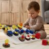 Ο κύβος και ο πίνακας είναι σχεδιασμένοι ώστε να προσφέρουν διαφορετικά επίπεδα δυσκολίας, ιδανικά για παιδιά από 12 μηνών, 18 μηνών και 24 μηνών. Κάθε στάδιο περιλαμβάνει 5 δραστηριότητες που προσαρμόζονται στις αναπτυξιακές ανάγκες του παιδιού, προσφέροντας σταδιακές προκλήσεις που εξελίσσονται μαζί του.