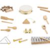Το τρίγωνο και το μεταλλόφωνο εισάγουν μελωδικούς ήχους, εμπλουτίζοντας τη μουσική εμπειρία και ενθαρρύνοντας τη δημιουργικότητα των παιδιών. Οι 2 μαράκες και τα δύο καμπανάκια προσφέρουν ευκαιρίες για εξερεύνηση του ρυθμού και της κίνησης, ενώ τα 2 κύμβαλα με λαβή προσθέτουν δυναμικές διαστάσεις στις μουσικές δραστηριότητες.