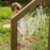 Η στιβαρή κατασκευή του πλαισίου γίνεται από εμποτισμένο ξύλο πεύκου, με σανίδες πάχους 2,0 και 2,5 εκ., που προσφέρουν αντοχή και σταθερότητα. Τα υλικά και τα εξαρτήματα είναι ανθεκτικά στις καιρικές συνθήκες και στην υπεριώδη ακτινοβολία, καθιστώντας τον πίνακα κατάλληλο για μόνιμη χρήση σε εξωτερικούς χώρους, όπως τον κήπο ή την παιδική χαρά.