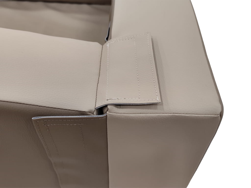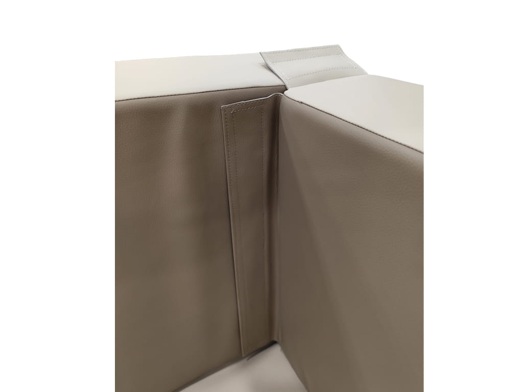 Η κατασκευή της αποτελείται από σταθερό αφρώδες υλικό, με επένδυση από ανθεκτική δερματίνη σε χρώμα της επιλογής σας, ενώ διαθέτει και πάτο από δερματίνη για μεγαλύτερη αντοχή και εύκολη συντήρηση. Το υλικό καθαρίζεται εύκολα και είναι κατάλληλο για καθημερινή χρήση σε χώρους με αυξημένη δραστηριότητα.