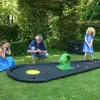Πίστα mini golf, που εξισορροπεί τις ανωμαλίες του εδάφους και προσφέρει τέλεια ταχύτητα και απόδοση της μπάλας. Τα υπερυψωμένα άκρα εμποδίζουν την μπάλα να φύγει από την πίστα. Μπορείτε να την μεταφέρετε εύκολα χάρη στην τσάντα μεταφοράς. Είναι κατάλληλη για εσωτερικούς και εξωτερικούς χώρους. Δεν περιλαμβάνονται μπαστούνια, μπάλες και εμπόδια. Υλικό: Αφρώδες mat. Βάρος: 6,9 kg Μέγεθος τσάντας: 120 x 33 x 23 εκ. Μέγεθος πίστας: 340 x 110 x 5 εκ.