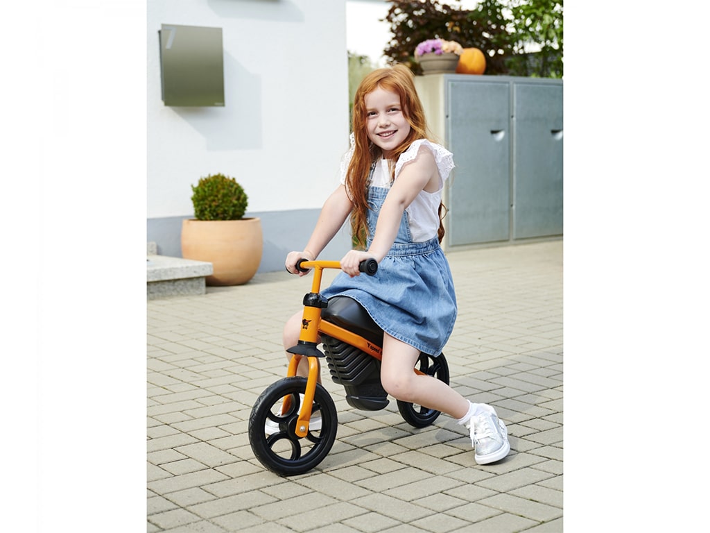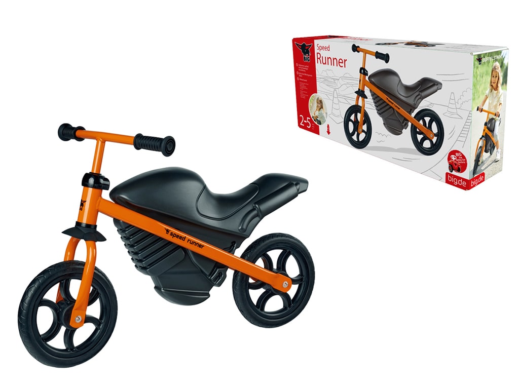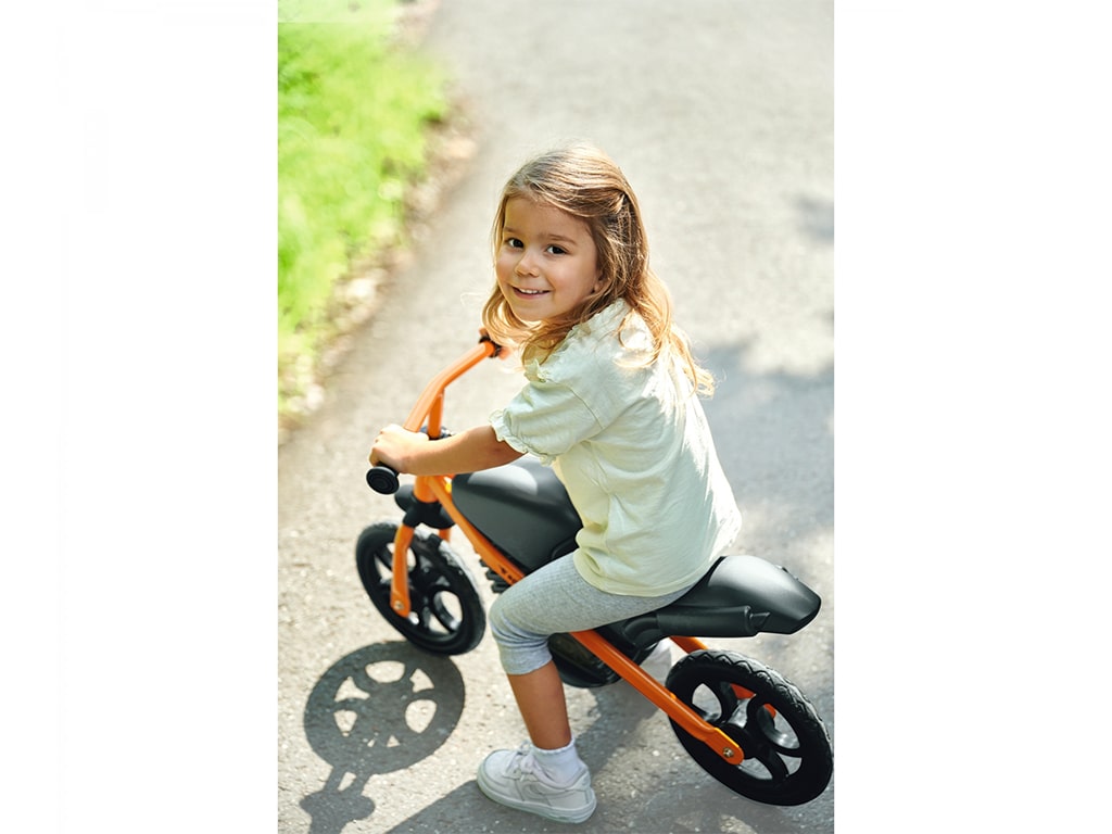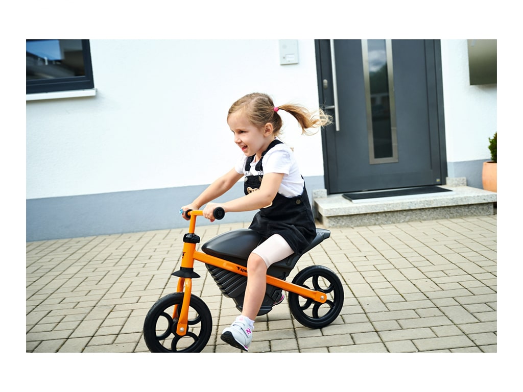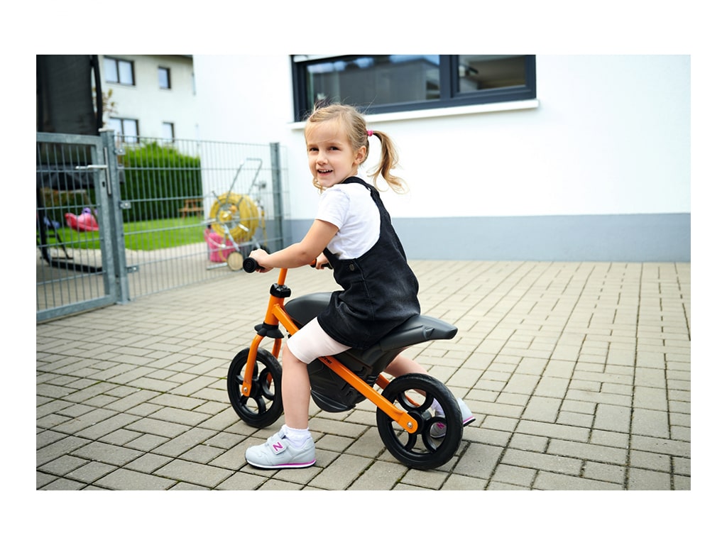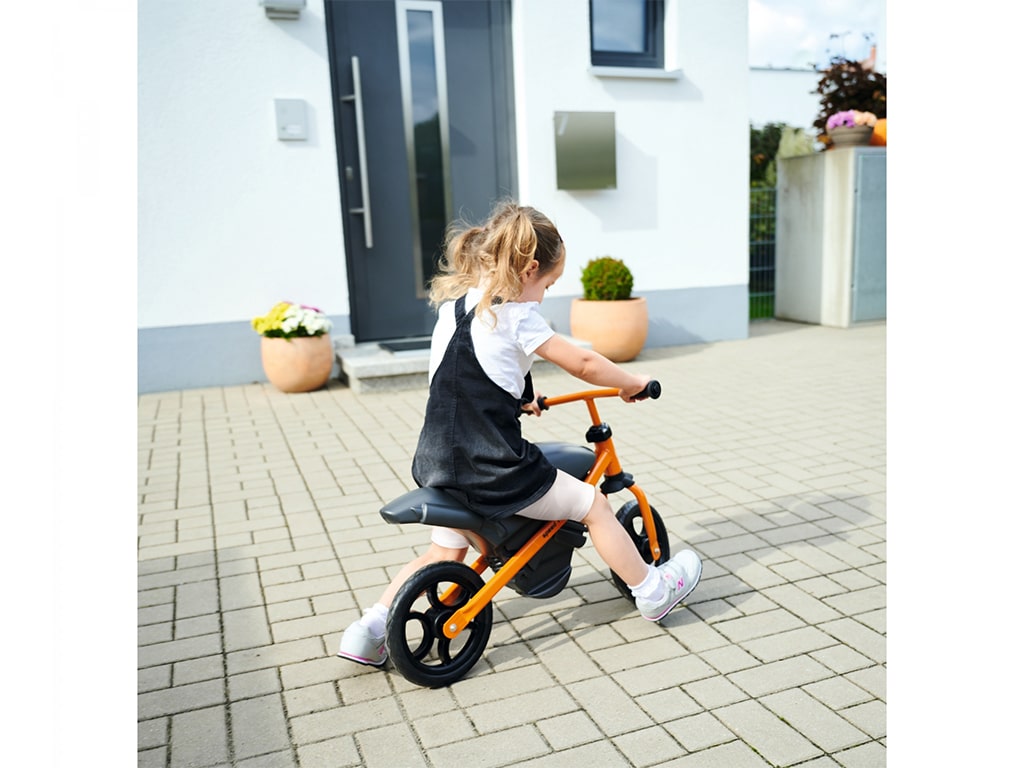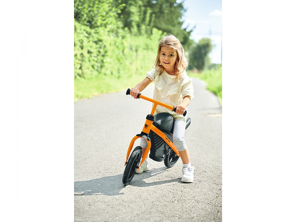 Ποδήλατο ισορροπίας, με σπορ σχεδιασμό μοτοσυκλέτας, προσφέρει τέλεια οδηγική άνεση χάρη στον συνδυασμό πλαστικού υψηλής ποιότητας με στιβαρό μεταλλικό σκελετό. Με ρυθμιζόμενη σέλα και τιμόνι σε 3 θέσεις. Εργονομικό τιμόνι με μαλακές λαβές που αποτρέπουν την ολίσθηση και παρέχουν την απαραίτητη προστασία στα χέρια. Με υψηλής ποιότητας μαλακούς ελαστικούς τροχούς που προσφέρουν μια αθόρυβη και ευχάριστη εμπειρία οδήγησης. Βοηθάει τα μικρά παιδιά στην ισορροπία και τον συντονισμό. Κατασκευάζεται στη Γερμανία. Βάρος: 4,11 kg.
