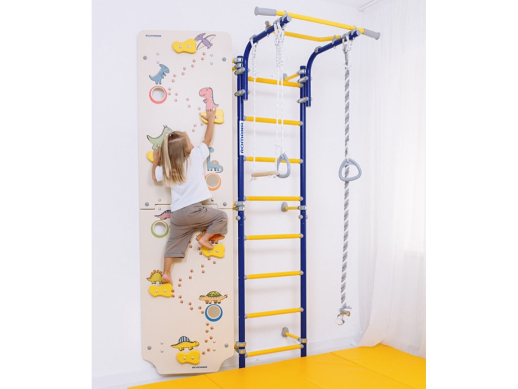 Το πολύζυγο Dino με τοίχο αναρρίχησης, είναι ένα ολοκληρωμένο σετ για παιδιά και ενήλικες, ιδανικό για το σπίτι, το σχολείο ή χώρους ειδικής αγωγής. Ο συνδυασμός της μεταλλικής σκάλας και του ξύλινου τοίχου αναρρίχησης από υψηλής ποιότητας κόντρα πλακέ, δημιουργεί ένα πολυλειτουργικό σύστημα άσκησης και παιχνιδιού.