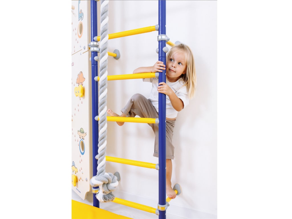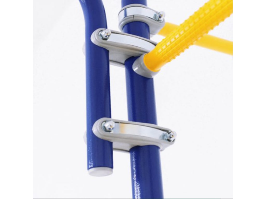 Η στιβαρή μεταλλική κατασκευή με πλαστικά στοιχεία μεγάλης αντοχής προσφέρει ασφάλεια και σταθερότητα, ενώ οι αντιολισθητική επιφάνεια της σκάλας εξασφαλίζουν άνετο κράτημα και προστασία. Το σύστημα διαθέτει ρυθμιζόμενη μπάρα έλξεων, σχοινί αναρρίχησης, κρίκους γυμναστικής και μπάρα-αιώρα, ενισχύοντας τη φυσική ανάπτυξη, τη δύναμη και την κινητικότητα των παιδιών.