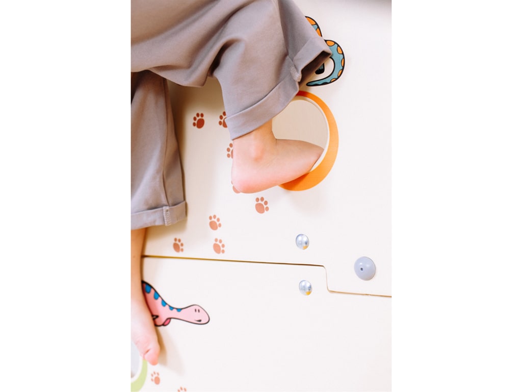 Ο τοίχος αναρρίχησης Dino μπορεί να τοποθετηθεί και στις δύο πλευρές της σκάλας, επιτρέποντας ευελιξία στην εγκατάσταση, ακόμη και σε γωνίες ή χώρους με εμπόδια όπως θερμαντικά σώματα.