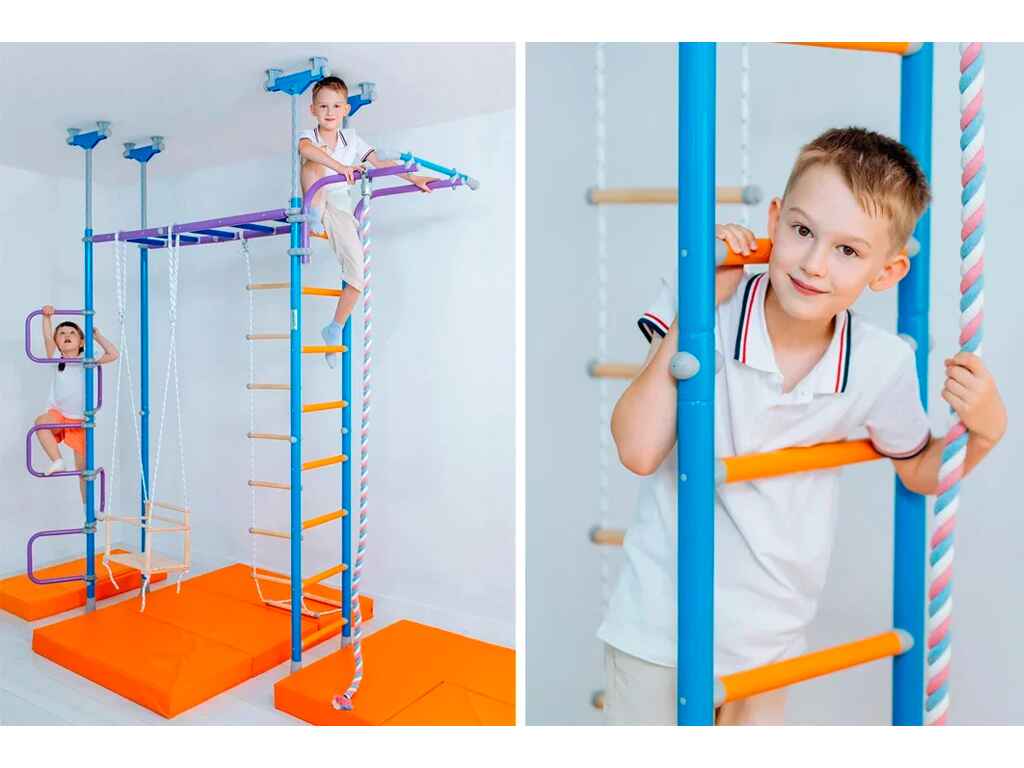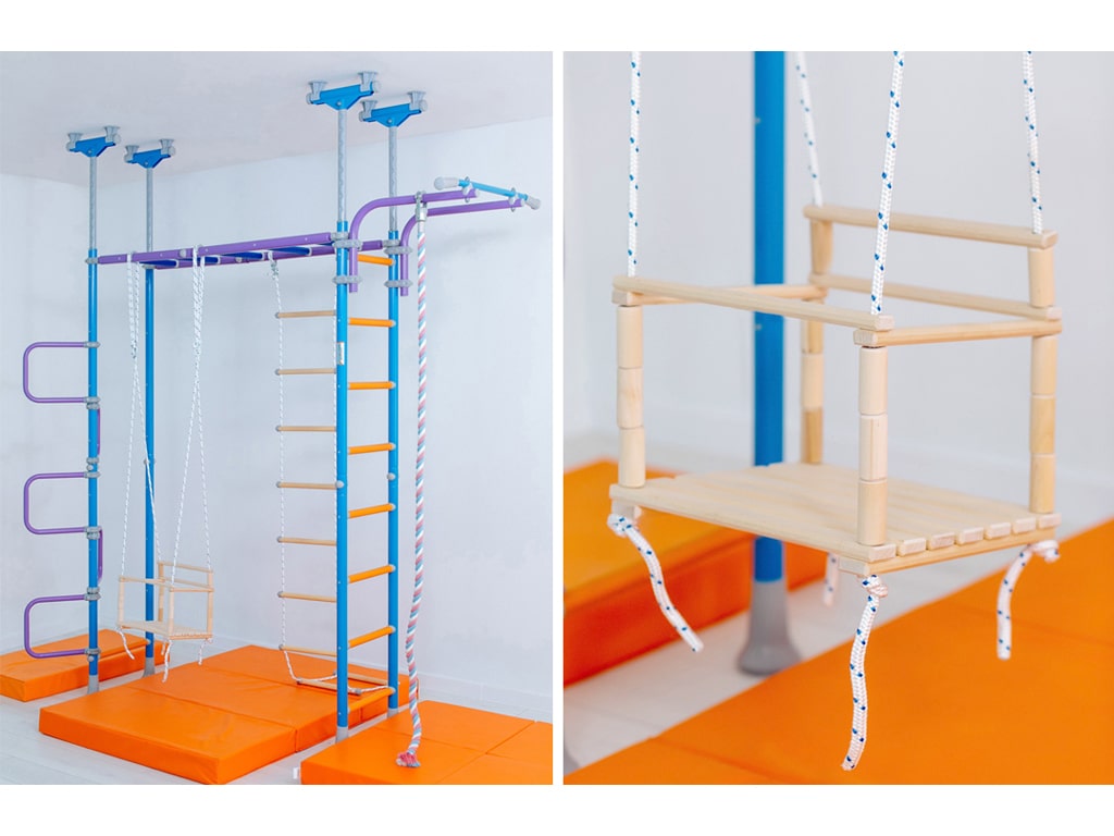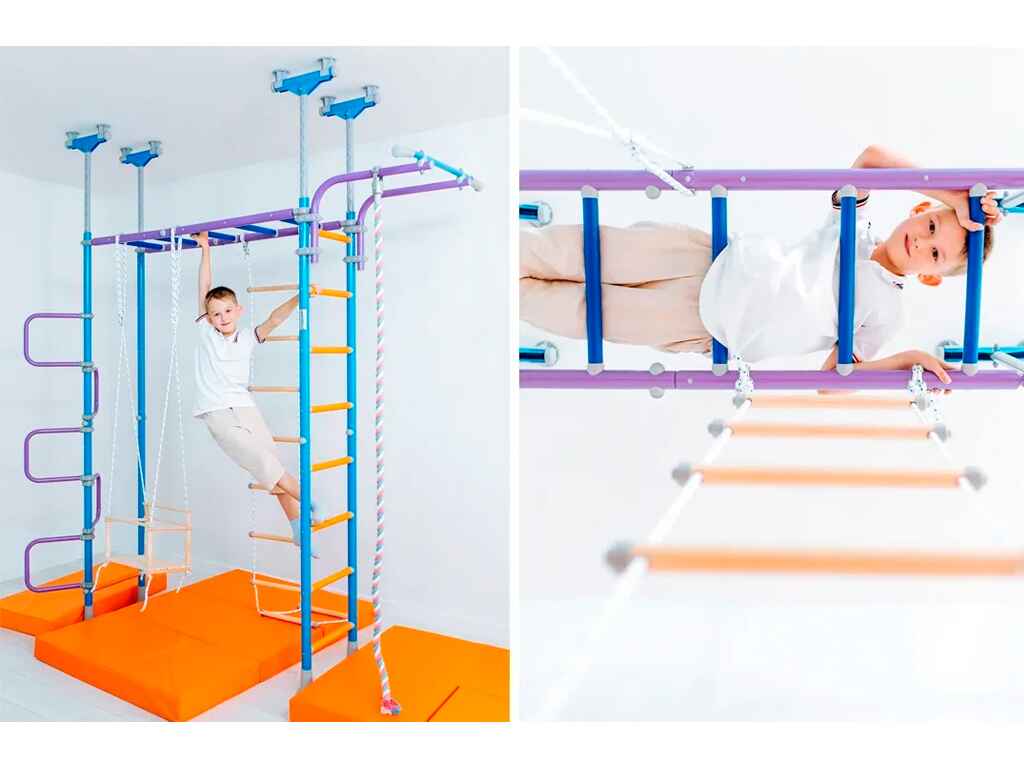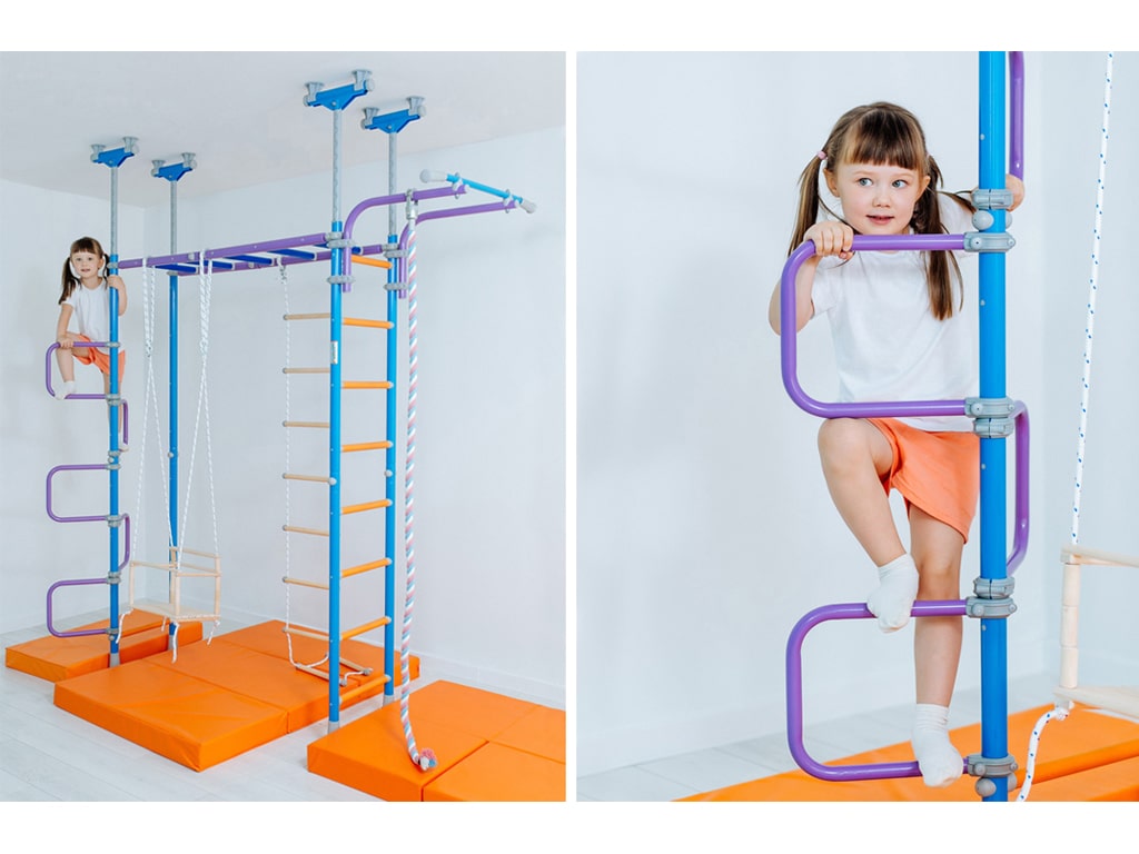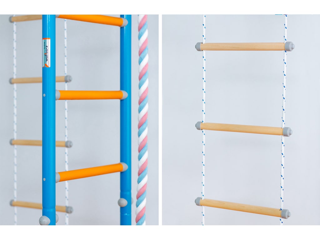 Το σετ περιλαμβάνει μεταλλική σκάλα με αντιολισθητικά σκαλοπάτια, αιωρούμενη σκάλα αναρρίχησης, σχοινί αναρρίχησης, ξύλινη κούνια, καθώς και δύο μονόζυγα, ένα οριζόντιο μονόζυγο για έλξεις και αιώρηση και ένα πλευρικό μονόζυγο για ασκήσεις και παιχνίδι. Ο συνδυασμός αυτών των εξαρτημάτων ενθαρρύνει τα παιδιά να αναπτύξουν τη δύναμη, την ισορροπία, τον συντονισμό και την αυτοπεποίθησή τους, μέσα από το δημιουργικό και ενεργό παιχνίδι.